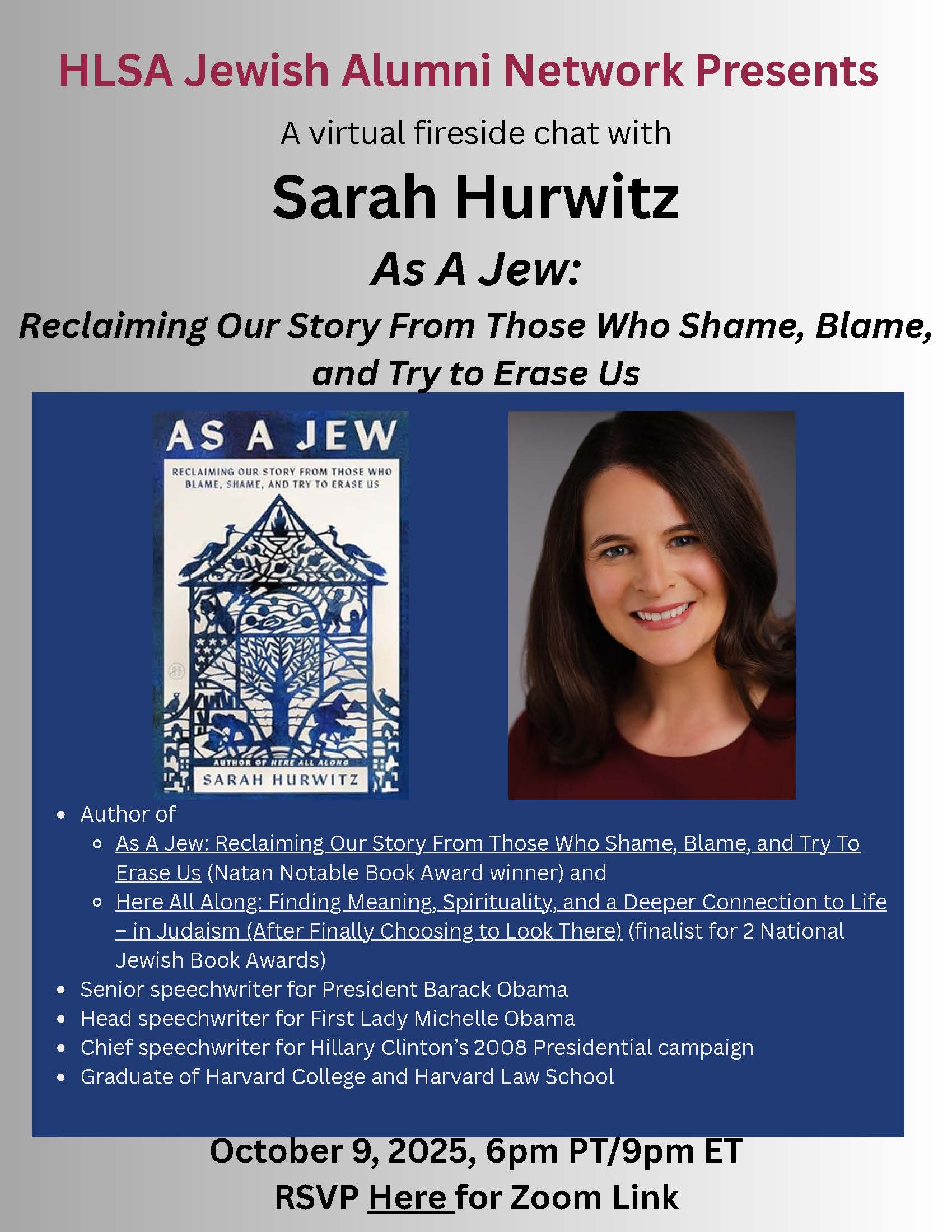 Please join Michael Dorff (HLS '96) as he talks to Sarah Hurwitz (HLS '04) about her new book on October 9, 2025 at 6 p.m. PT/9 p.m. ET!